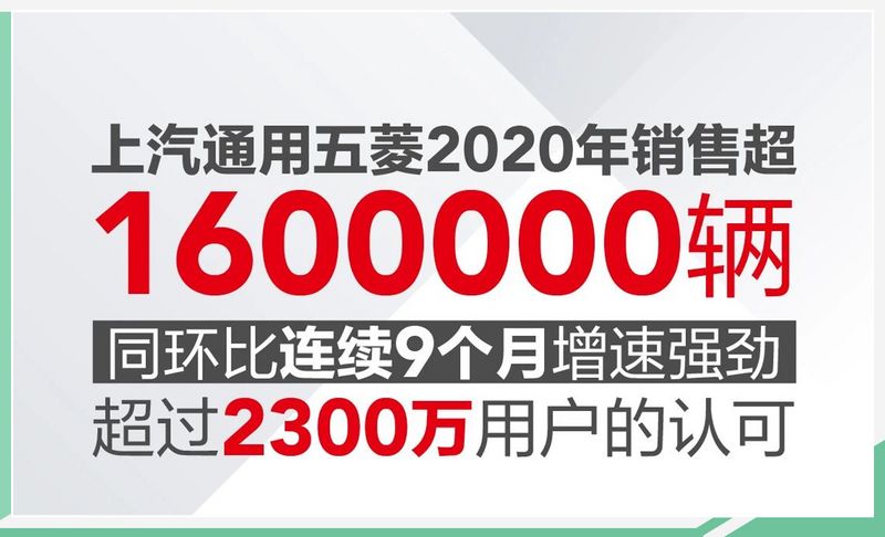 1月4日,上汽通用五菱公布2020年全年销量数据。上汽通用五菱2020年累计销量达1,600,057辆,连续9个月实现同比、环比双增长。在“人民需要什么