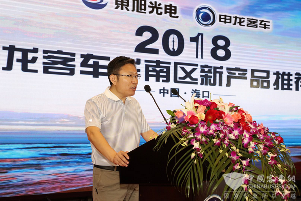 会上,申龙客车副总经理周纪文先生代表东旭集团、东旭光电、申龙客车、广西申龙发表致辞。他首先对与会企业代表、嘉宾的光临表示感谢,他表示,近几年,厚积薄发的申龙客车凭借雄厚的技术研发实力、性能极佳的产品和全心为客户奉献的服务理念不断获得市场青睐。2017年,申龙客车作为东旭光电旗下全资子公司后,依托东旭光电雄厚的资金保障和强大的技术支持,在技术研发实力更上一层楼,产品臻于成熟,市场迎来快速增长。2017年申龙客车创造出了销量累计7155台,订单总额达44亿元,其中新能源销量占比超过三分之二,跻身行业前五强的辉煌业绩。未来,申龙客车将在新能源客车领域加快步伐,朝着更高的目标迈进,致力于将申龙客车打造成为中国新能源客车的领导品牌。最后,他诚挚邀请与会企业代表、嘉宾共同参与和见证申龙未来的发展。