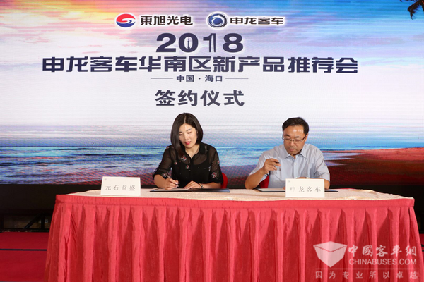 随后,申龙客车副总经理陶荣华先生以及销售公司相关领导代表申龙客车分别与新疆元石益盛新能源科技有限公司、深圳市佰壹科技服务有限公司以及郑州巴斯卡尔电子商务有限公司进行了新能源汽车销售订单签约仪式。