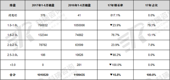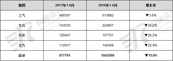 表1 2017年1-6月国产MPV及其乘用车、商用车、汽车的销量