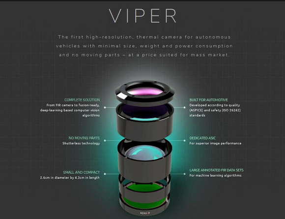 correction)技术及ISP专用芯片。Viper是目前市面上尺寸最小的一款远红外线传感器,其具有高度的成本效益。事实上,该款产品的成本要低于其他传统的红外线也是传感器,且该产品的应用不会受到车头灯、阳光直射或光照变化的影响。(本文图片选自adasky.com)