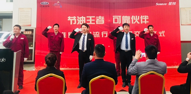 秉持“敬客经营、服务销车”价值理念,江淮星锐在陕西江淮举行了盛大的交车仪式。在活动现场,采购单位与江淮星锐正式交接车钥匙,建立了友好的合作关系。交车仪式礼数周全,气势磅礴,现场氛围十分热烈,体现了双方合作的满满诚意。据悉,此次江淮汽车交付车型均为星锐节油王6座车型,将在之后的电器物流运输中担任重要角色,为当地电器物流公司带来运力充足、安全可靠、省心省力的出行体验。