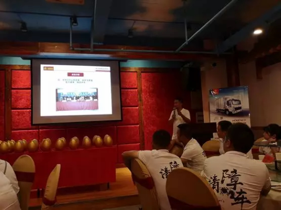 HOWO轻卡随州区域经理房宏伟结合当地多家改装单位的情况,介绍我司HOWO轻卡科技版车型亮点:自重合规、底盘布局合理、公告多样性、高承载力等;介绍我司国六车型及产品线布局,改装单位现在可以直接订购国六车型,满足改装单位公告优先的营销理念。