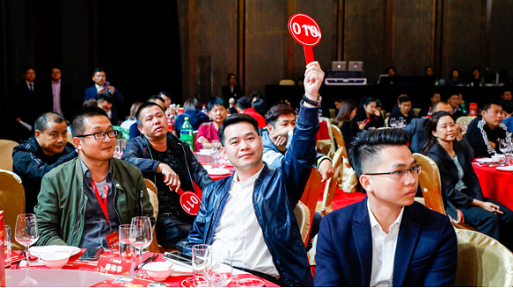【积极举牌激烈角逐的拍卖现场】