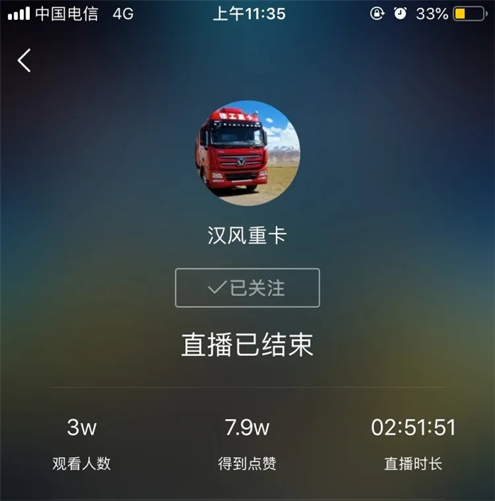 29日上午9点,漢風重卡官方快手平台进行了“ULT超轻版四大金刚网络发布会暨漢風特惠复工节”的直播活动,全程三个小时的直播,吸引了3万多卡友的观看,当场锁定订单300余辆,首战告捷!