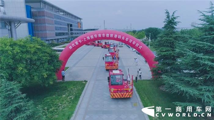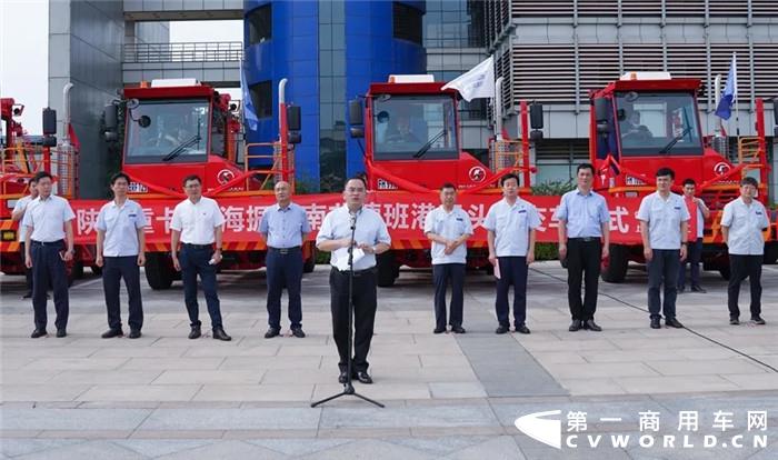 7月3日,陕汽重卡-上海振华南非德班港码头车交车仪式暨中东区域经销授权仪式在陕汽西安商用车产业园举行。陕汽控股党委书记、董事长袁宏明与上海振华重工集团有限公司党委副书记、总裁黄庆丰现场发表致辞。陕汽控股党委副书记、总经理王延宏主持活动。