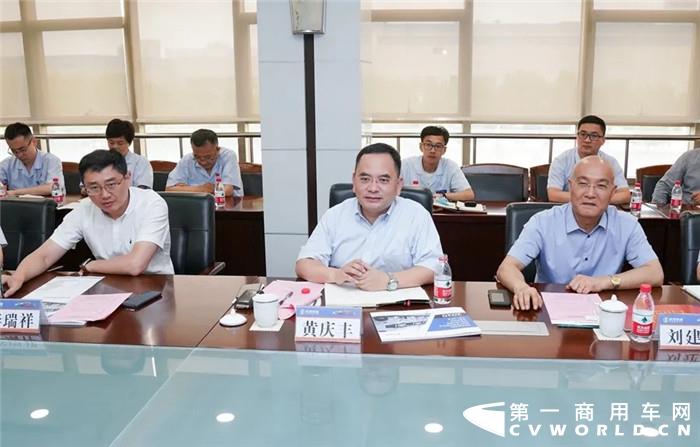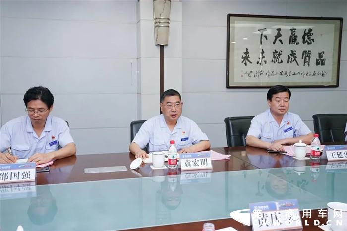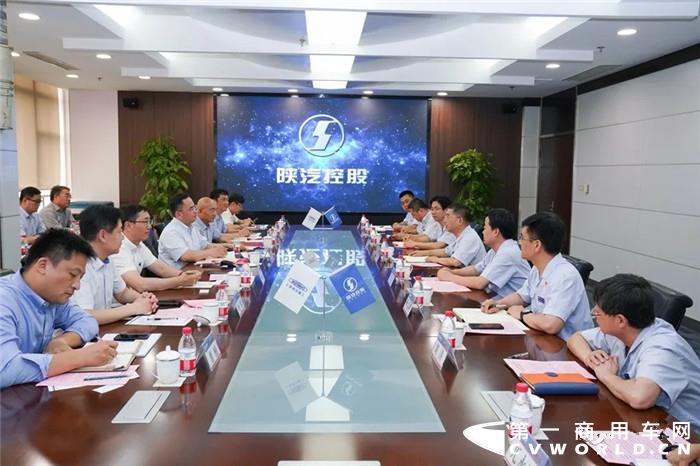 交车仪式前,袁宏明与黄庆丰进行了交流会谈。袁宏明对黄庆丰一行来到陕汽表示欢迎,感谢上海振华长期以来对陕汽的支持。希望双方进一步深化合作,实现共赢。黄庆丰介绍了上海振华的发展历程、业务布局及未来愿景,并表示双方自战略合作协议签订以来,进行了广泛深入的合作,取得了丰硕成果,后期上海振华将依托客户资源优势,与陕汽充分合作,共同将民族品牌推向世界。