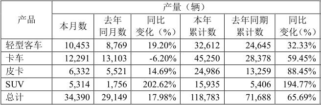 江铃汽车2021年4月产量如下: