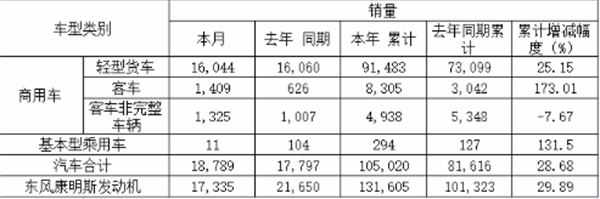 前6月,东风汽车股份轻卡累销超9万辆,同比大涨25.2%。