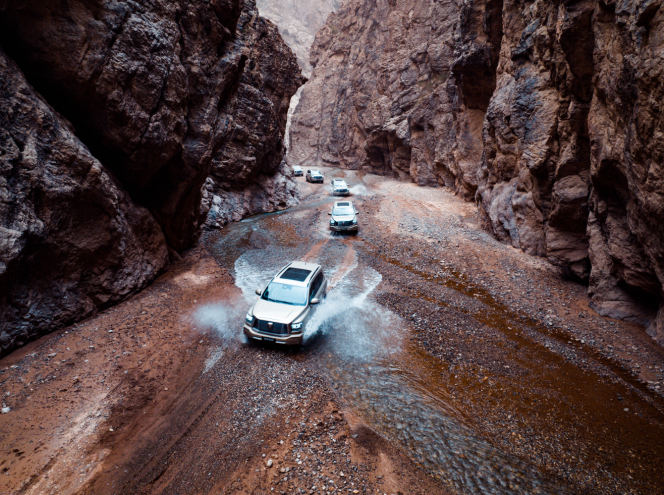 当行进至南疆深处,柯坪大峡谷和温宿大峡谷所形成的极致雅丹戈壁地貌体现出大自然的原始与粗犷。砂石、戈壁、荆棘、盐碱地等复杂路况对于车辆的可靠性、耐久度有着很大的考验。坦克500拥有的全新一代智能四驱系统与全地形系统完美兼容,可实现多模式、多场景的组合,丰富驾驶乐趣;当行走于崇山峻岭的蜿蜒小路,坦克转弯能满足小转弯半径的驾驶需求,在非铺装路面从容驶出路线;当穿行清澈但暗藏危险的河滩,涉水模式能实时获取水下信息为驾驶者保驾护航;当脚踏荆棘、砂石、戈壁、高坡,坦克500同级别领先的全地形系统支持11种驾驶模式,配合智能四驱系统轻松掌握驾驶者的意图,张弛有度、肆意驰骋。雪线之上尽显征服天地的豪情。