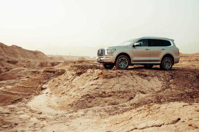 不同于南疆的原始粗狂,北疆山间盆地、丘陵、草原、森林、戈壁、沙漠,造就了风光旖旎与地貌丰富的北疆,在这幅变幻莫测的画卷中,坦克500以遒劲身线勾勒出的大尺寸车身,中正大气、雄厚端庄的设计,将坦克500的气场拉满,为其增添浓墨重彩的一笔。
