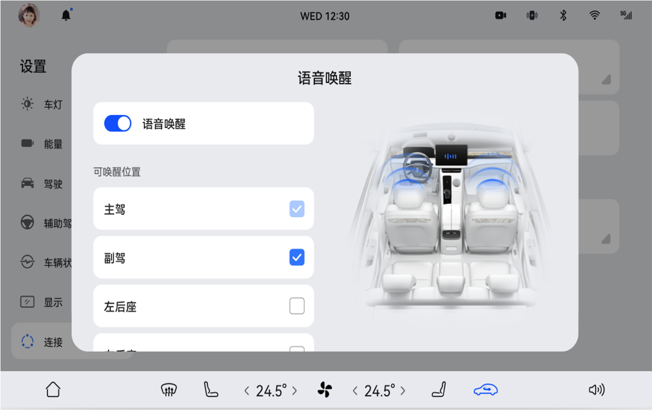 新增的“语音唤醒位置设置”功能,升级之后,车辆可以更精准识别语音唤醒指令来自主驾、副驾、左后座或右后座,可以自主设置关闭指定的拾音区,将语音唤醒的控制权更精准的授权给指定人,也能有效防止行驶中未成年人的干扰。提升交互体验的同时,保证更高的行车安全性。