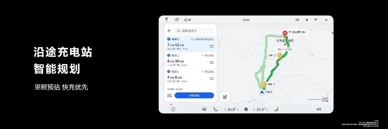 为优化城市补能场景,问界M5 EV的智慧充电功能,将导航与补能结点进行结合,智能规划沿途充电桩与出行路线。超长续航与更智能的能源管理方案,使问界M5
