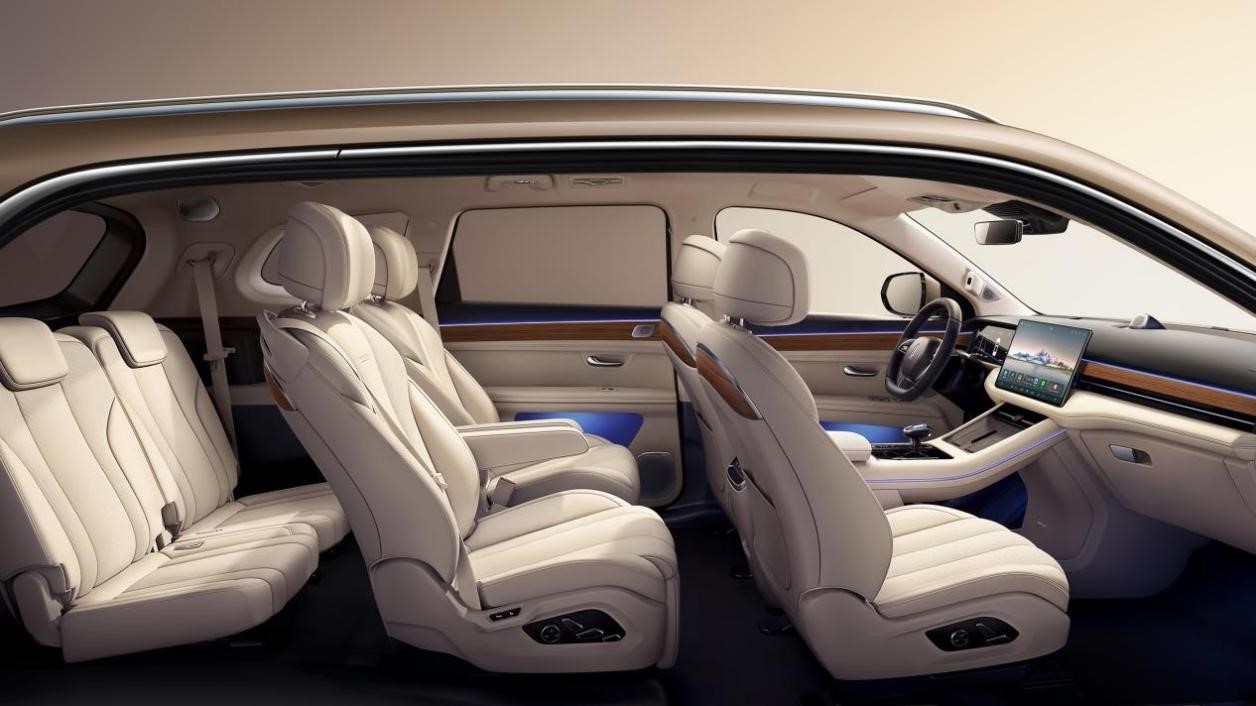 对家庭用车而言,大空间必不可少。作为一款豪华高端的六座SUV车型,问界M7长宽高分别为5020/1945/1775mm,采用2+2+2三排六座空间布局,独创的六合一增程器动力总成让乘员舱前向空间得到拓展,纵向长度达到2605mm,内部空间宽敞舒适,每位乘客均能拥有独立杯垫、音响、阅读灯,为全家人一起出行创造了舒适条件。