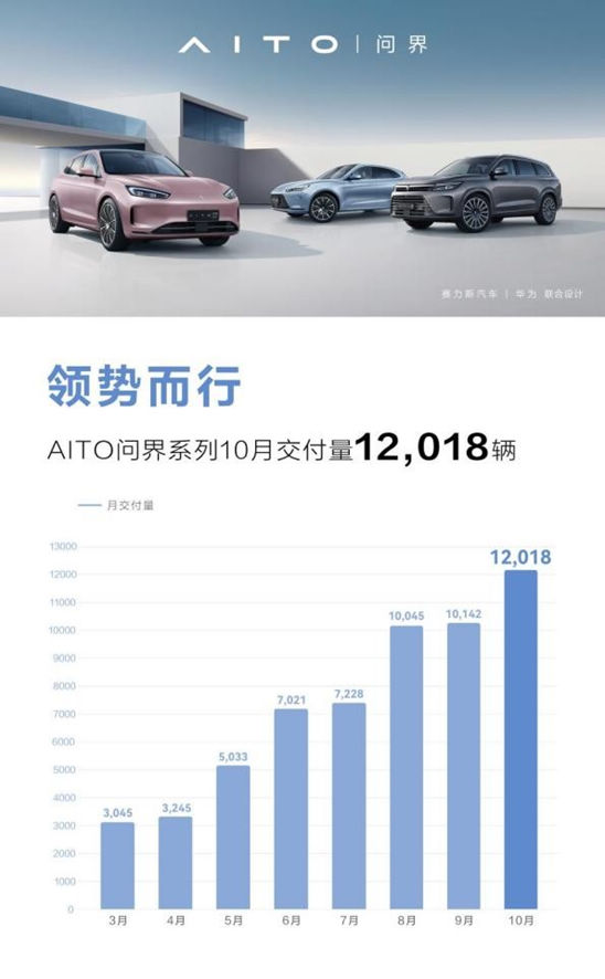 在激烈的抢位大战中,AITO问界交上了优异的成绩,10月份交付量达到12018辆,连续三个月单月销量破万台,保持稳健增长态势,成为高端新能源SUV市场最炙手可热的品牌之一。