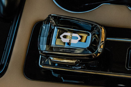 SOUND”中置扬声器;还有最经典的水晶挡把,高级感十足;座椅采用Nappa纹路的真皮材质,填充物相当柔软,两侧对腿部、背部的支撑到位,所触之处都是软质包裹,全景天幕尽显豪华气质。