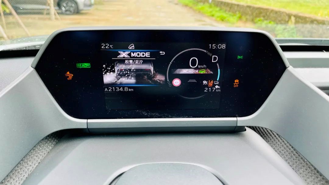 值得一提的是,X-MODE四驱越野辅助模式对越野能力的包容度是足够的。哪怕你的驾驶经验不够丰富,它也提供了低速蠕行模式,共有五档强度可调,每一档之间的速度差大约为2km/h。你可以根据自己的需要调到合适的档位,此时就只需握好方向盘,松开动力踏板,bZ4X便会自动前行,帮你完成每一次越野路段的通过。这个低速蠕行模式,堪称越野版的自适应巡航。
