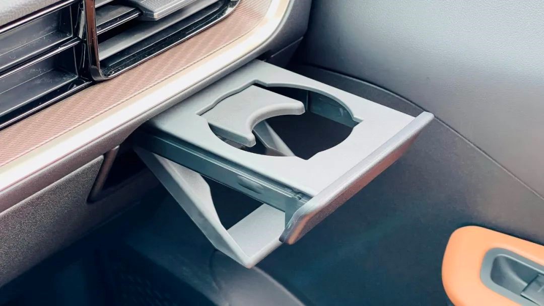 还有左右杯架,采用了隐藏式设计,平时不用就可以收回,节省空间并保持美观。需要的时候轻按即可弹出,而且杯架正好位于出风口下方,这样饮料冬天可加热,夏天可制冷,真是一举两得。