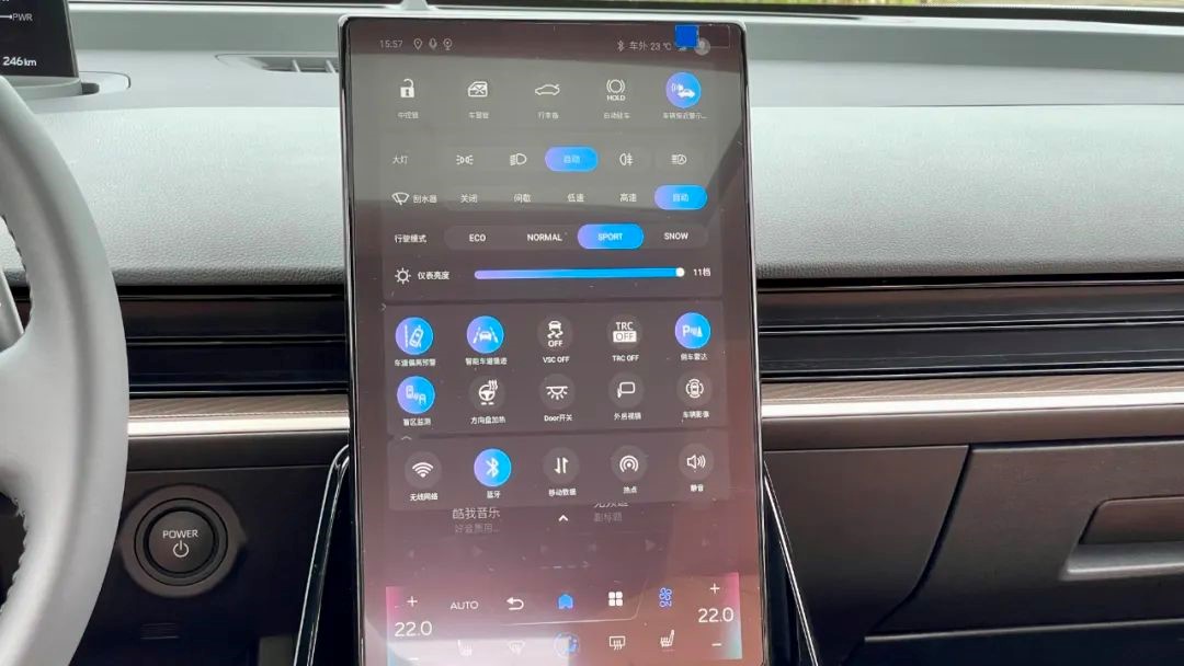 和操作手机一样,手指自上而下轻轻一滑,即可调出最常用的快捷菜单,同时我们常用的APP也能通过预置或下载实现。bZ3的这套智能车机系统已经达到了 目前合资品牌电动汽车的天花板水平,即便和造车新势力相比,也是名列前茅的。
