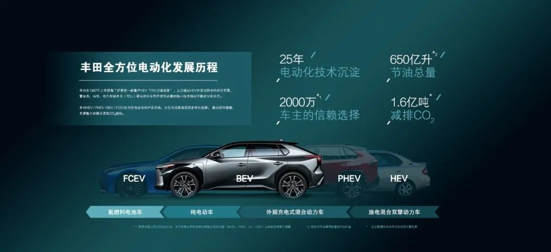 从混动汽车到电动汽车,改变的是汽车的驱动形式,不变的,是丰田人对安全、品质、可靠的坚持。