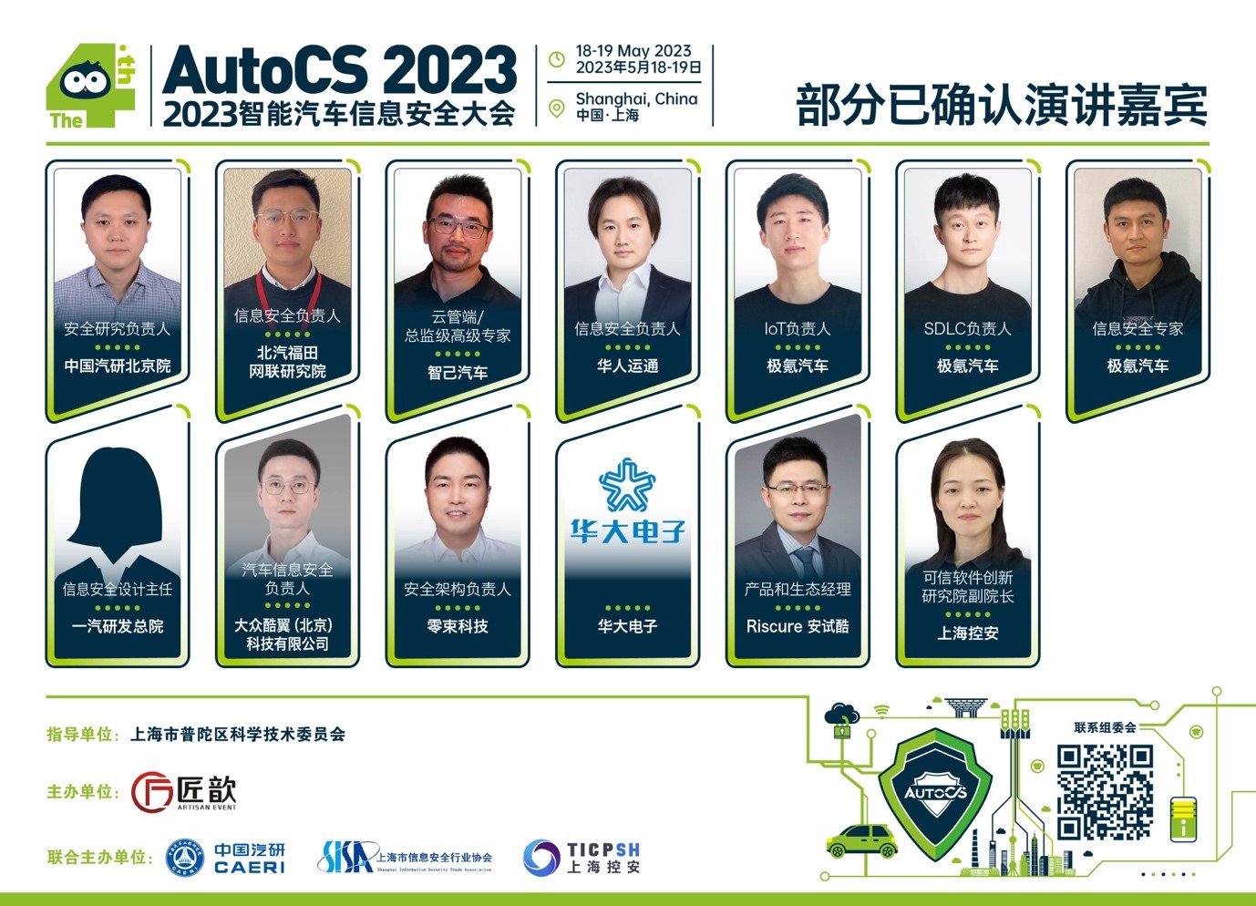 由上海市普陀区科学技术委员会指导,匠歆会展主办,中国汽研北京院、上海市信息安全行业协会、上海控安联合主办的The 4th AutoCS 2023