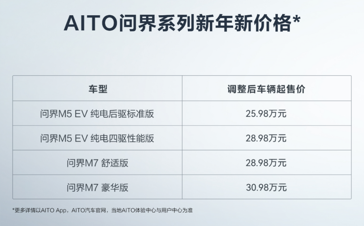 AITO问界M5纯电版和AITO问界M7最高降价均达到了3万元。降价后,AITO问界M5纯电版起售价为25.98万元起,AITO问界M7起售价为28.98万元起。降价后的AITO问界系列车型拥有更明显的价格优势。尤其是主打六座大空间的增程式车型—AITO问界M7的起售价来到了30万元内,为用户提供了全新的选择。