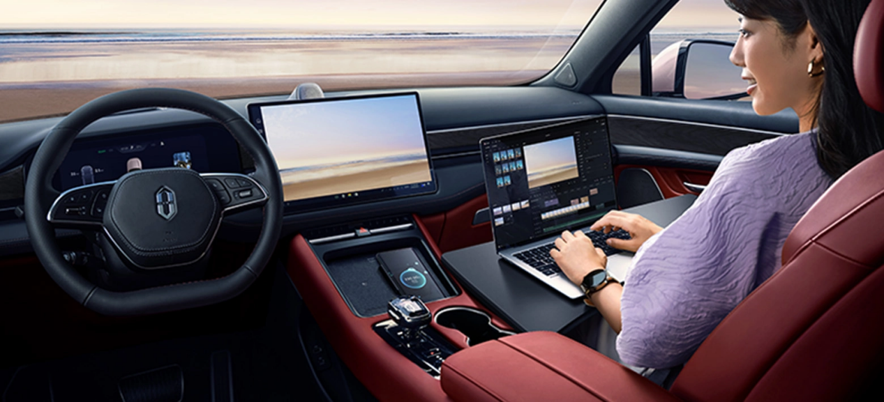 PC车机协同则支持车机与PC电脑多屏协同,进行屏幕镜像、扩展,车机还可支持键盘和鼠标进行操作。在进行线上会议时,车机可做电脑用,而电脑则可以用来做会议纪要。除此之外,车机大屏显示会议内容,并同步发声,当后排和三排共同参与会议时,也可沉浸、清晰的获取会议内容。