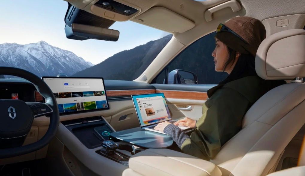 3智能座舱的支持下,车机可充当PC扩展屏,并支持键盘、鼠标操控。如此一来,用户既可以用车机播放会议内容,还可将电脑用于其他应用场景,如记录会议或实时输出文本。