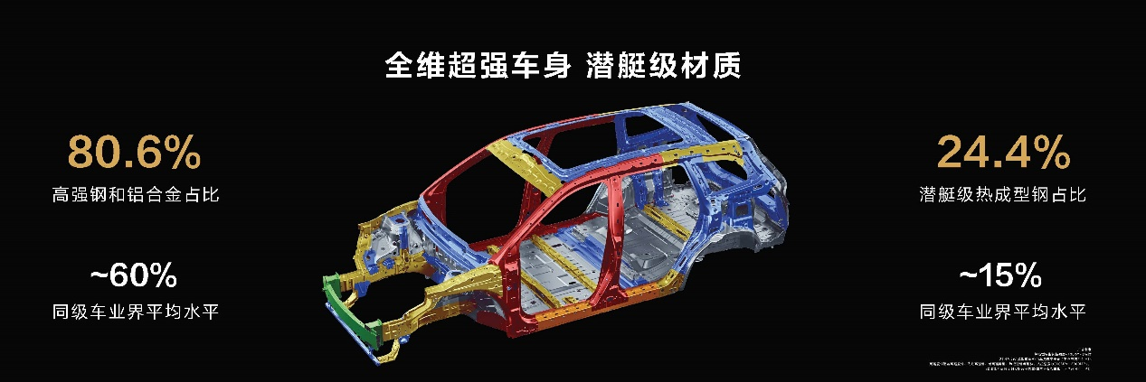 康波表示:“我们在消费者能看到和看不到的地方,都投入了巨大的成本,希望用最好的技术、最好的材料,最好的手段去将安全防护做到极致。”问界新M7大五座全车潜艇级热成型钢占比24.4%、高强钢和铝合金占比80.6%,全面优于现售50万级豪华品牌主流车型,同时还运用更多CBS复合车身材料,有效提升车辆疲劳耐久、车身刚度和碰撞安全性能,赋予驾乘人员安全感。