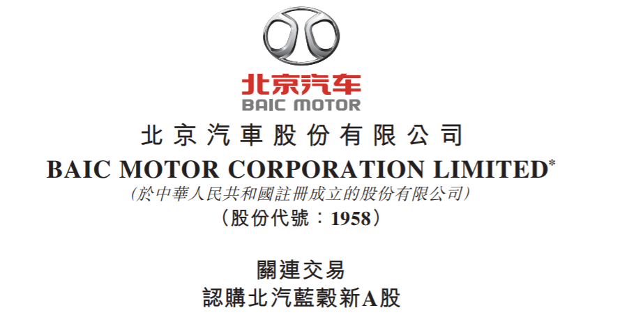 北京汽车3.44亿元认购北汽蓝谷6.25%股份