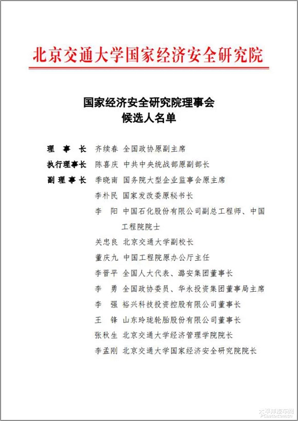 2018年11月21日,北京交通大学国家经济安全研究院揭牌仪式暨国家经济安全研究院理事会成立大会在北京召开,全国政协原副主席齐续春,中共中央统战部原副部长陈喜庆,国务院大型企业监事会原主席季晓南,国家发改委原秘书长李朴民,北京交通大学党委书记、校务委员会主任曹国永,北京交通大学校长、党委副书记宁滨,中国石化股份有限公司副总工程师、中国工程院院士李阳,北京交通大学副校长关忠良、北京交通大学国家经济安全研究院院长李孟刚等领导、专家共同出席会议。玲珑轮胎董事长、总裁王锋应邀参会,并被推选为国家经济安全研究院理事会副理事长。