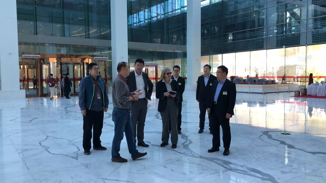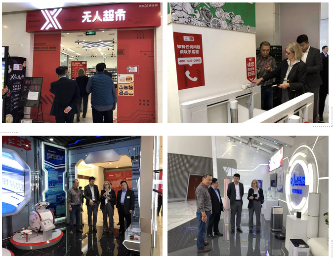 Platt一行参观了位于京东总部一楼的智能展厅,重点体验了京东无人超市,无人物流设备,智能生活馆等。