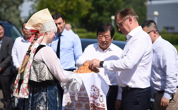 谭旭光受到了雅罗斯拉夫州政府官员的热情接待。他们按照当地最尊贵的迎宾礼仪,向谭旭光敬献面包和盐。