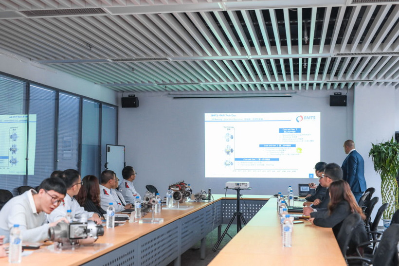 除了产品和解决方案的展示之外,为了加强与一汽集团在专项领域的技术深入了解和交流,BMTS在会议室举行了涡轮增压新技术专项技术讲座,Nisar AI-Hasan博士重点介绍了BMTS的浮动式可变截面涡轮增压技术,电子辅助涡轮增压技术、3D轴承、可调节面压气机(CMX)等解决方案,双方开展了非常深入的介绍和交流。