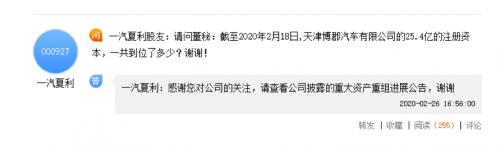 对于尚在审批流程中的拖延款项,一汽夏利的股民们的着急心情难以掩盖。面对股民的提问,一汽夏利做出了如图回复。