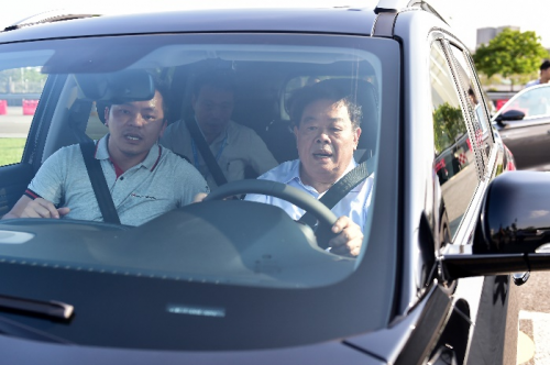 (广汽乘用车总经理张跃赛陪同福耀集团董事长曹德旺试乘并讲解传祺产品)