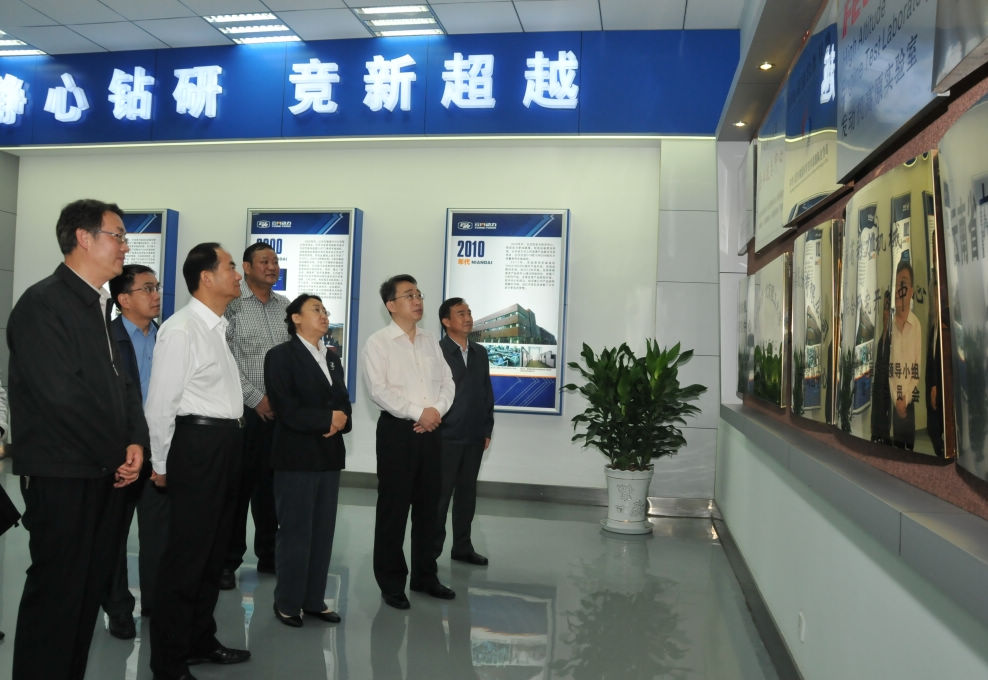 调研小组一行首先参观了公司技术中心,在董事长杨波的介绍下,了解了云内动力从1956年建厂发展至今的历史、内燃机技术的变革史及云内动力未来的发展规划。