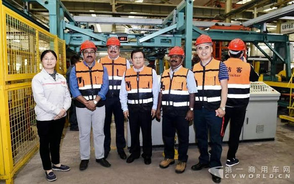 随后陈兴林一行参观了新试验中心,了解综合试验台运行情况和空气悬架产品的发展情况;深入现场询问下料钻孔自动线和轧制自动线的运行状态,并与印度JAI钢板弹簧厂(Jamna Auto Industries LTD)来访客户进行交流。