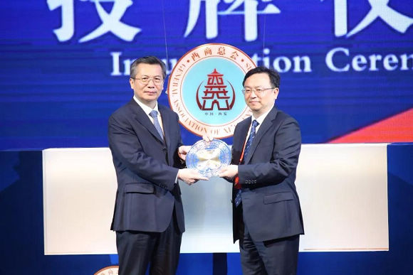 王永康为西商总会首任会长王传福授“会长牌”