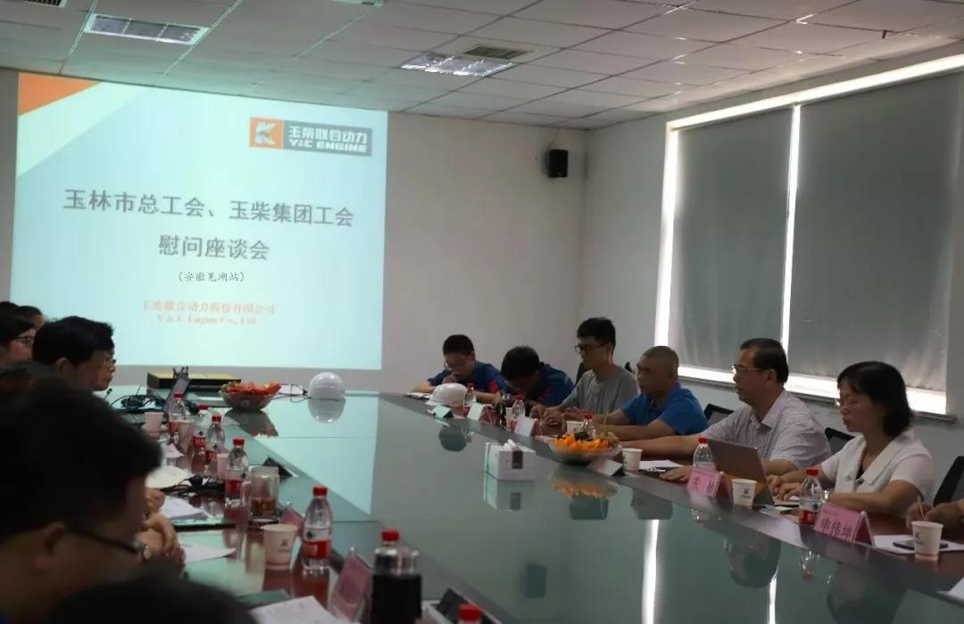 8月6日,玉林市人大常委会副主任、市总工会主席黄少明一行莅临联合动力开展慰问活动,玉柴集团工会主席关敏陪同。联合动力副总经理陈贻云、工会主席夏晶伟热情接待客人,向黄少明、关敏一行介绍了联合动力基本情况以及芜湖市规划发展、人文环境等情况,陪同参观了联合动力工厂、职工生活场地与设施,并组织召开了员工代表慰问座谈会。