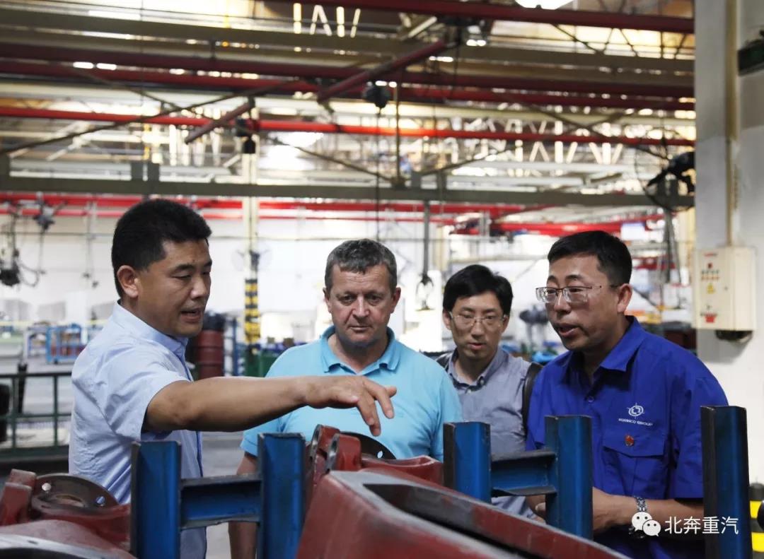 座谈后,高访团一行在刘金奎的陪同下参观了驾驶室制造公司、桥箱公司和总装公司生产线,并观看了北奔重卡全系列样车。