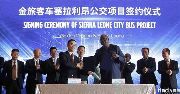 8月30日,金旅客车塞拉利昂公交项目签约仪式在厦门举行。塞拉利昂交通部长卡比内•卡隆、总统办公室主任弗迪•拉多•尤凯、内务部部长乌玛鲁•库鲁玛、厦门市经济和信息化局副局长李建明、中国信用保险公司厦门分公司总经理郑中平、福汽集团总经理兼金龙汽车董事长邱志向、福汽集团副总经理兼金龙汽车副董事长谢思瑜、厦门金龙旅行车有限公司(以下简称“金旅”)董事长吴文彬、总经理彭东庆、海外销售总监江永辉等领导和嘉宾莅临现场,共同见证并进行了该项目的签约仪式。据悉,此项目为塞拉利昂政府采购项目,为改善民生与交通,塞拉利昂交通部采购200辆金旅公交车及城际客车投放首都弗里敦及周边地区。