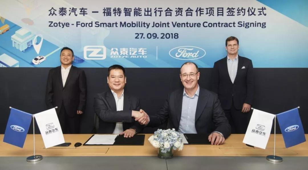 2018年9月27日,中国上海 —— 福特智能出行有限责任公司和众泰汽车股份有限公司(众泰汽车)于今日签署最终合资协议,双方各出资50%,组建众泰福特智能出行科技有限公司。新合资公司将致力于为网约车运营商和网约车司机提供智能、定制化的纯电动车出行解决方案,助力中国网约车市场的蓬勃发展。福特智能出行有限责任公司是福特汽车公司旗下全资子公司。