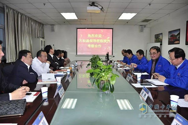 2018年11月15日,山东万和通物流有限公司总裁王士民、物流园区总经理王超、物流园区副总经理谢根、服务站长田祥友一行领导来陕汽参观考察。陕汽重卡副总经理周银朝、陕重汽销售公司总经理刘翔韬等领导亲自陪同考察。