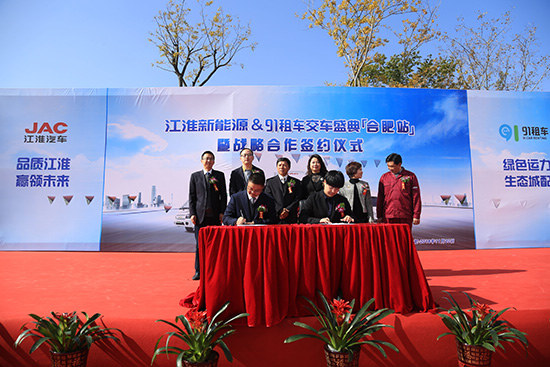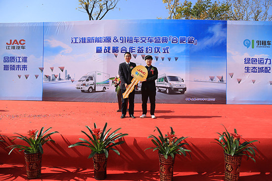 11月20日上午,江淮新能源商用车与91租车交车盛典(合肥站)暨战略合作签约仪式,在江淮汽车高端及纯电动轻卡制造基地隆重举行。