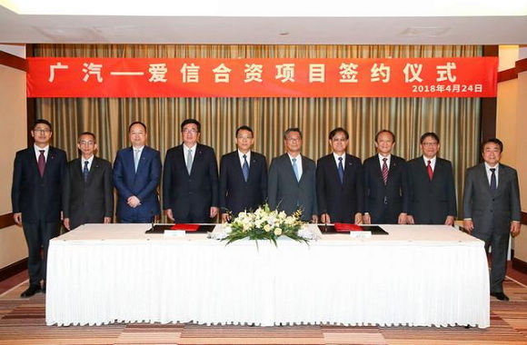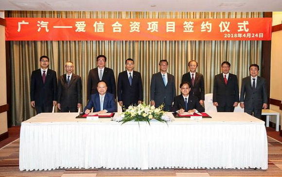 4月24日下午,广州汽车集团乘用车有限公司(以下简称“广汽乘用车”)与爱信AW株式会社(以下简称“爱信AW”)在北京举行自动变速箱合资项目签约仪式。根据合资协议,双方将在汽车用自动变速器及其相关零部件的制造、销售、售后服务及其相关技术的咨询等方面开展合资合作,共同提升双方产品的竞争力和品牌溢价能力。