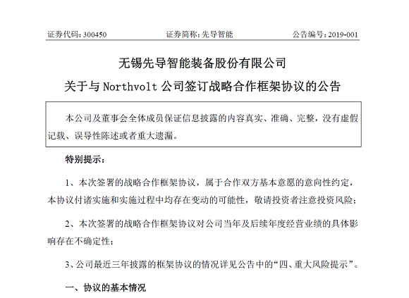 先导智能(300450)29日晚公告,公司近日与Northvolt签订了锂电池生产设备的《设备设计、生产、安装、调试通用条款及框架协议》。双方就锂电池生产设备业务建立合作关系,协议双方计划在未来进行约19.39亿元的业务合作。此次协议签署,标志着公司与Northvolt之间战略合作和长期伙伴关系的开始;代表着公司正式进入欧洲锂电池市场,有利于提升公司锂电设备技术能力,为双方合作创造更大的商业价值。