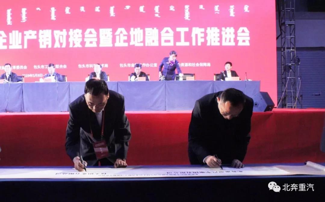 2019年5月9日下午,在包头市重点国有企业与民营企业产销对接会暨企地融合工作推进会主题大会上,中国兵器工业集团北奔重型汽车集团有限公司与包头钢铁(集团)有限责任公司和包头铝业有限公司分别签署战略合作框架协议,确立双方长期战略合作关系,为具体项目合作搭建平台。