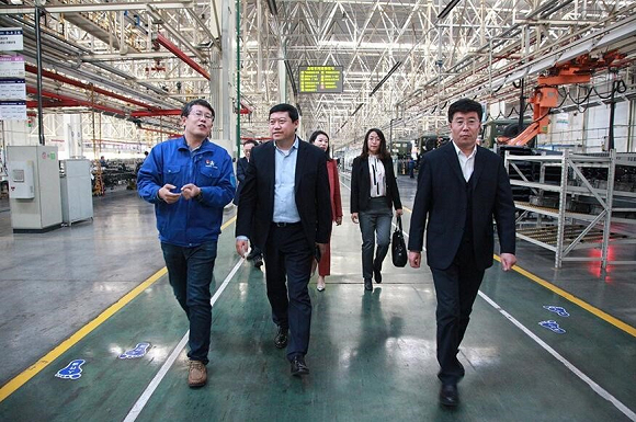 会后,李日明陪同王戈一行参观北奔重汽生产线,并观看了北奔重卡全系列样车。