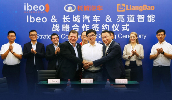 8月27日,长城汽车、亮道智能、Ibeo就L3/L4自动驾驶量产研发签署战略合作协议,长城汽车将选用新一代4D 固态激光雷达ibeoNEXT作为自动驾驶传感器系统中的核心组成部分,亮道智能将负责ibeoNEXT和环境感知系统在长城量产项目中的验证工作。这是全球第一个纯固态激光雷达量产合作项目,也是全球范围内首个纯固态激光雷达的车规量产合作。